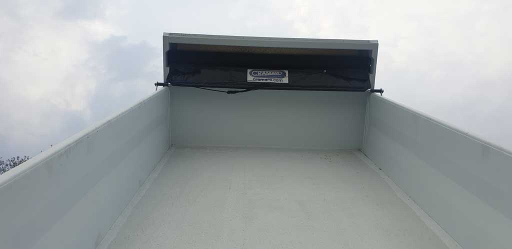 The system operates using arches, cables, and pulleys, with options for manual or electric operation, enabling operators to work easily, quickly, and safely. Using CRAMARO tarpaulins reduces loading and unloading times while enhancing road safety and protecting cargo from weather conditions.